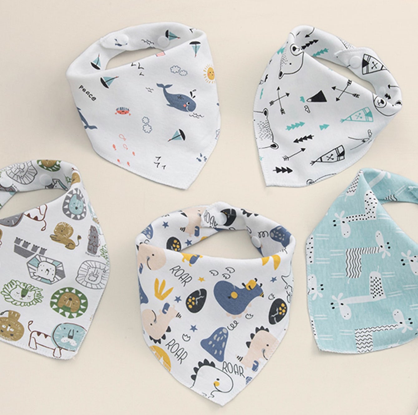 Babero 100% Algodón con dos entradas de botón a presión para conseguir un mejor ajuste de tamaño