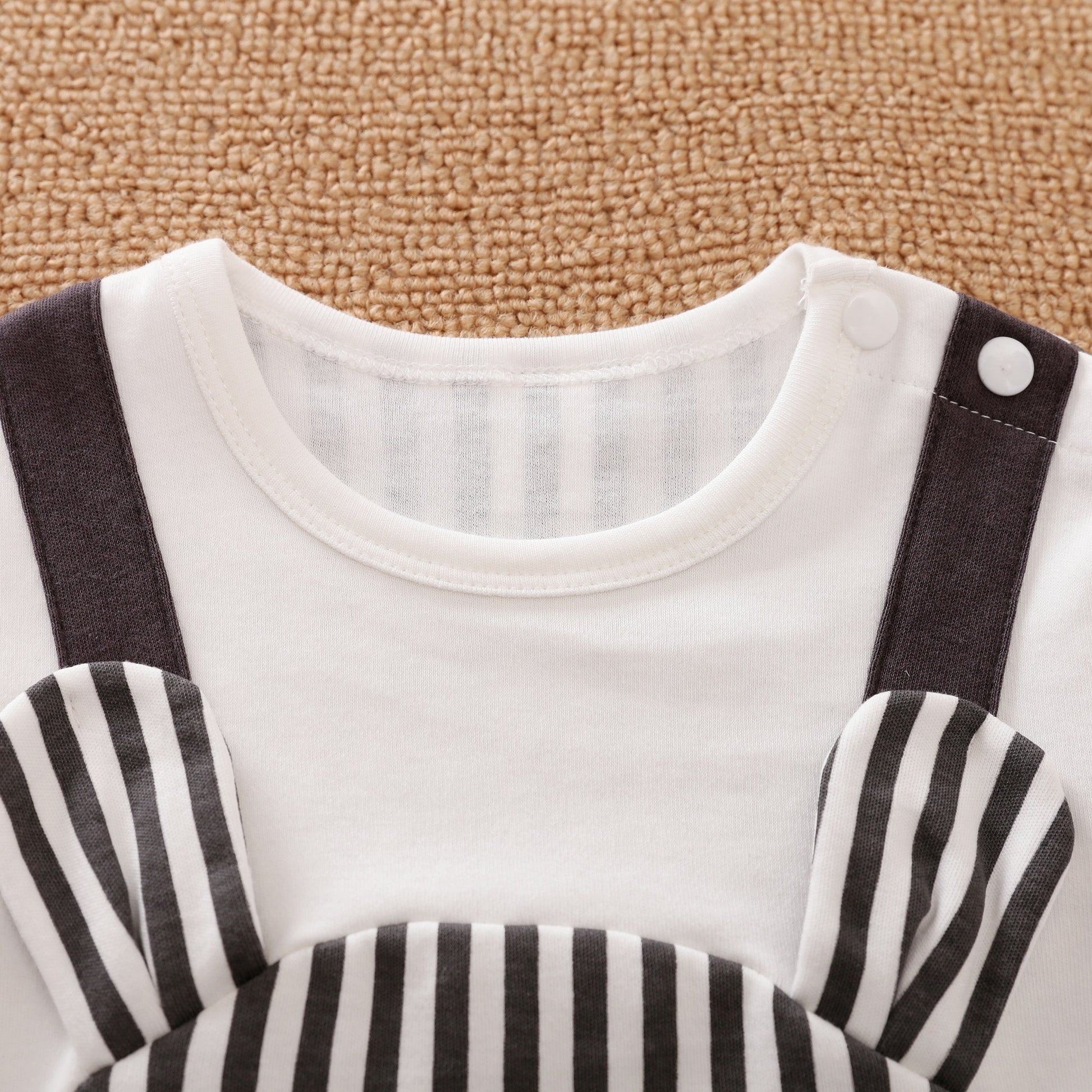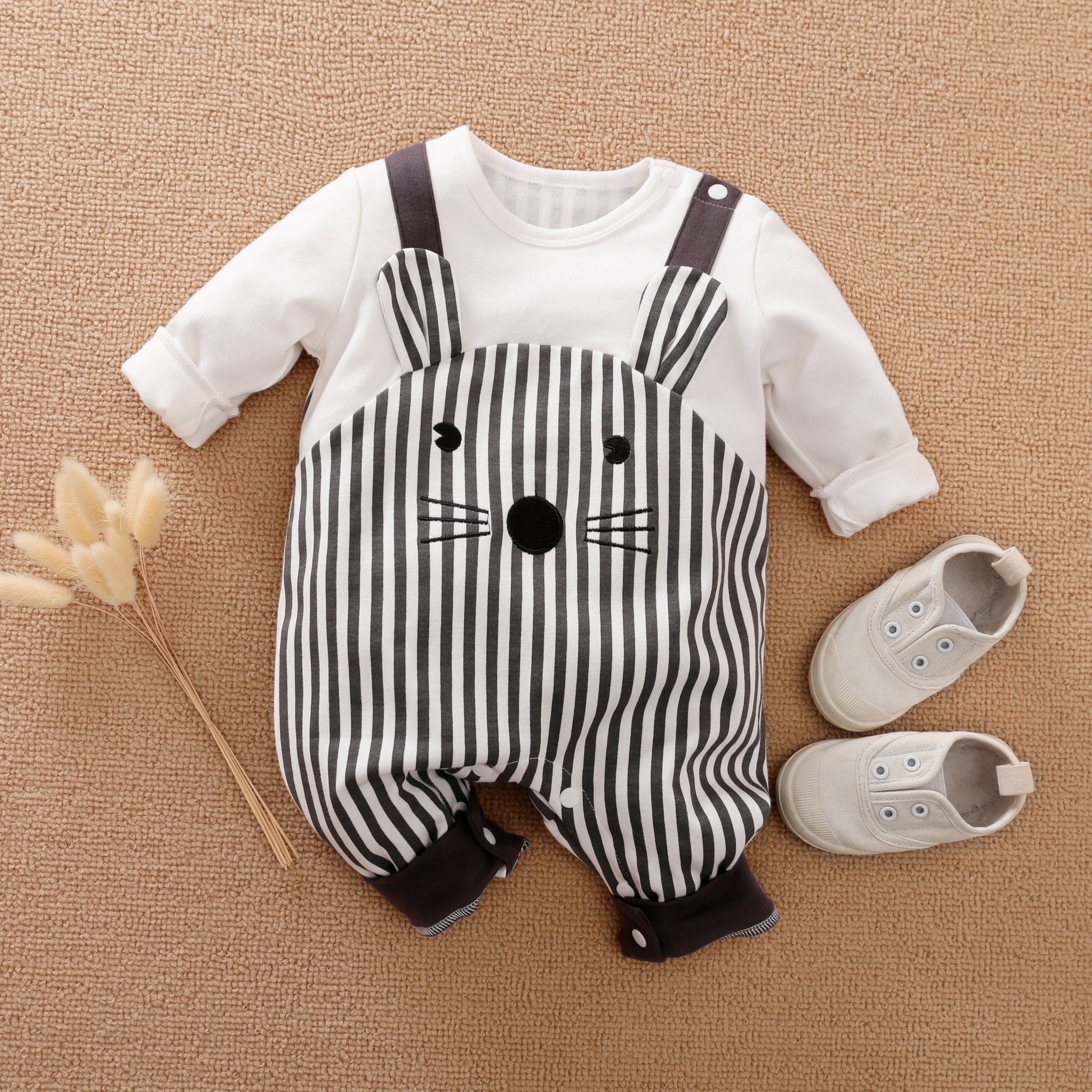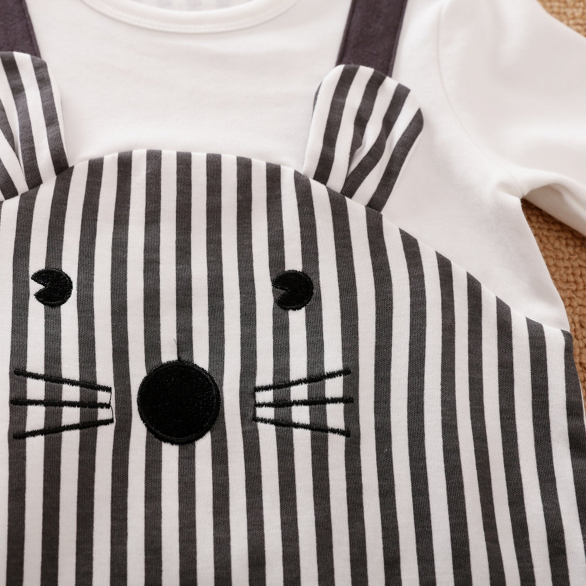 Enterito que simula jardinera con dibujo de Ratón con detalles bordados. Botones a presión en hombro y de pie a pie.