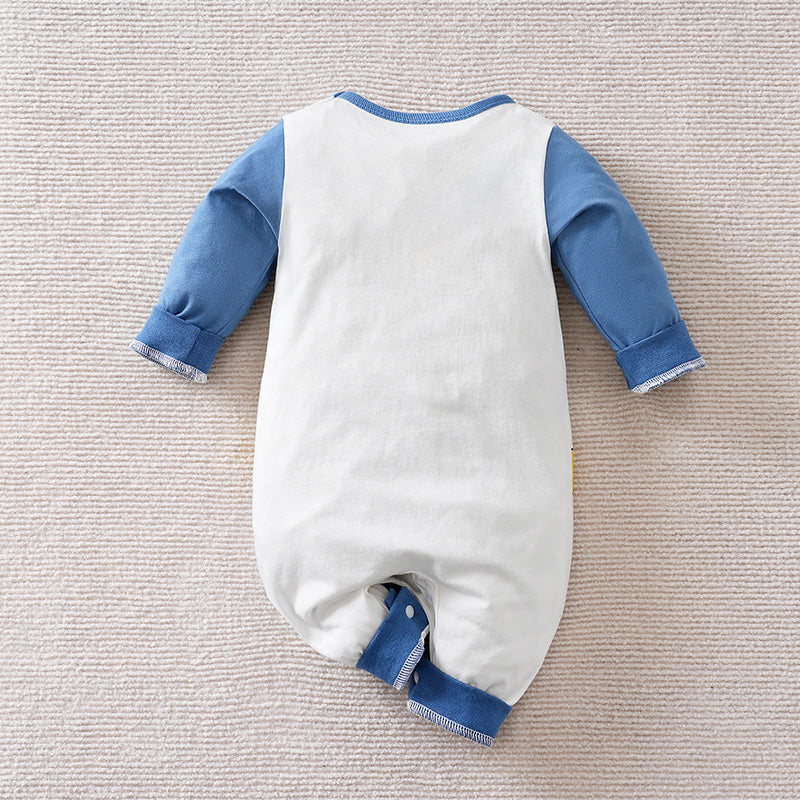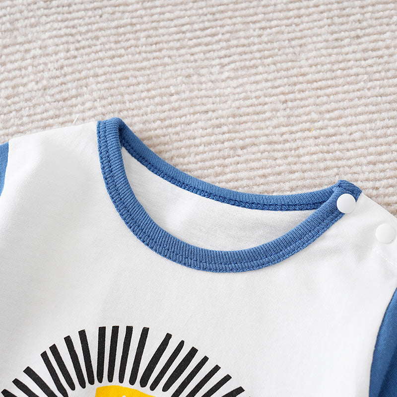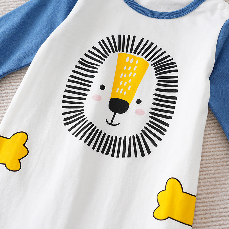 Enterito dibujo de León con mangas azules. Botones a presión en hombro y de pie a pie